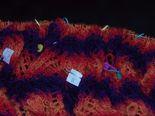 So, das war der 1. Versuch. Ich bin fast durch mit dem Muster, nur noch die Abschlusskante fehlt und ich hab grade einmal ein Viertel der geplanten Wolle verstrickt.